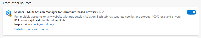 Sessner β Multi-Session Manager is a Chromium browser extension that lets you use multiple accounts on the same website at the same time – without the hassle of browser profiles or constantly logging in and out. Compatible with Edge, Brave, Opera, and Vivaldi.